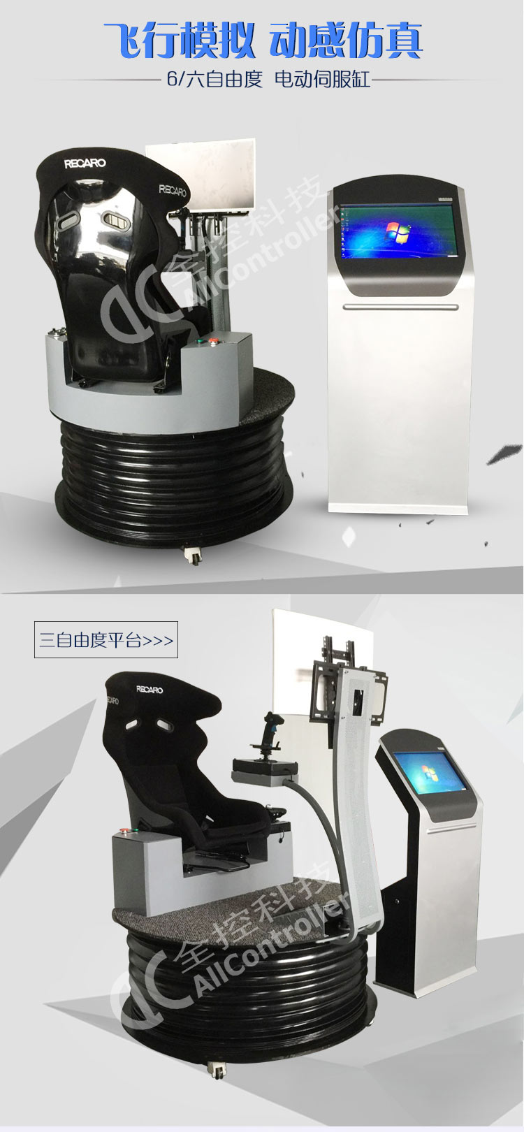3.平臺是屬于三自由度電動(dòng)平臺,它可以實(shí)現(xiàn)空間的三個(gè)運(yùn)動(dòng)姿態(tài),即前后俯仰,左右滾轉(zhuǎn),上下升降。駕駛一次我們這種平臺模擬機(jī)不亞于進(jìn)行了一次真實(shí)的空戰(zhàn)。