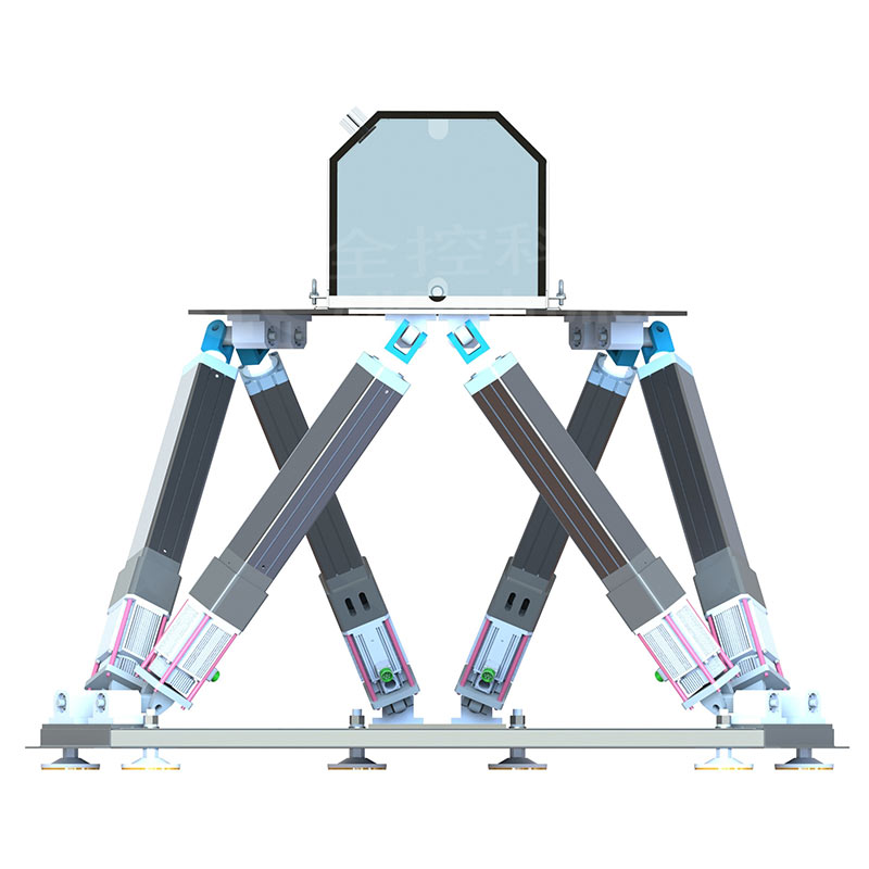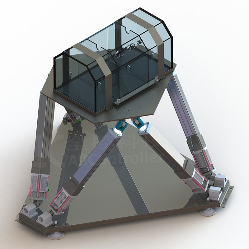 六自由度運(yùn)動平臺控制系統(tǒng)通過無線方式(WIFI或者5G傳輸)接收真實(shí)電鏟的運(yùn)動數(shù)據(jù)及運(yùn)行數(shù)據(jù),然后將接收到的數(shù)據(jù)進(jìn)行集中分析處理,系統(tǒng)根據(jù)處理結(jié)果來控制運(yùn)動平臺做出匹配的動作,可真實(shí)的模擬電鏟各個工作模式下的運(yùn)動反饋,例如路面顛簸感、鏟斗碰撞物體的碰撞感、上下坡的傾斜感等。平臺執(zhí)行器與控制器分開布置方便檢修維護(hù)。