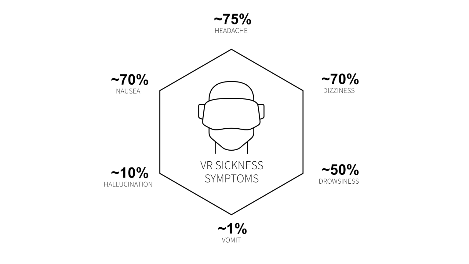 由于MDPI的Jiwon Lee,Mingyu Kim和Jinmo Kim撰寫的科學(xué)文章,我們能夠代表考慮到VR病的那些令人驚訝的數(shù)據(jù)。數(shù)字顯示100%的參與者感受到了虛擬現(xiàn)實(shí)的影響。90%的用戶感到VR病的偶然影響,而10%的接受調(diào)查的志愿者對他們的皮膚造成嚴(yán)重后果。疾病水平變化的主要原因是志愿者使用模擬器的復(fù)雜性。